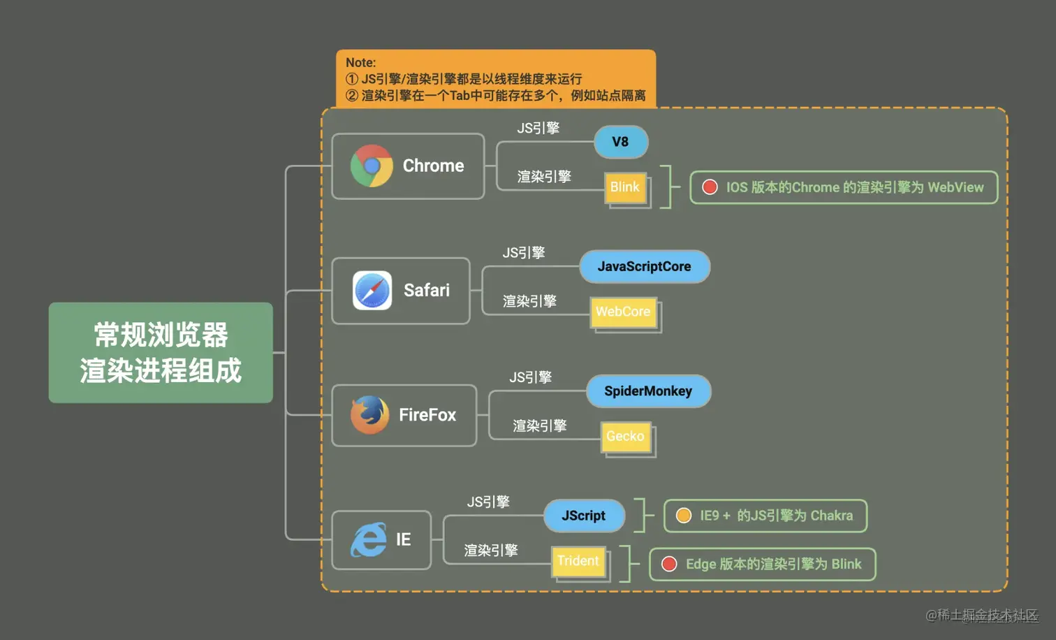 Chrome/Safari的渲染引擎,其实是一脉相承的。都是基于Webkit直接开发或者衍生出来的。