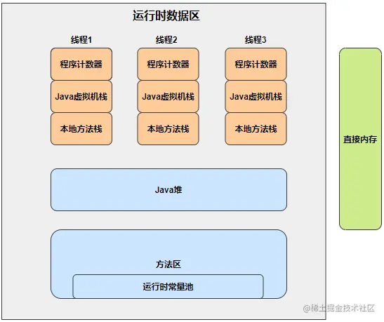 - 方法区与Java堆类似,也是各个线程共享的区域,它用于存储已被虚拟机加载的类型信息、常量、静态变量、即时编译器编译后的代码缓存等数据