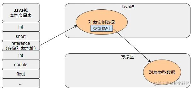 Java程序会通过栈上的reference(一个指向对象的引用)数据来操作堆上的具体对象,具体的访问方式由虚拟机实现。