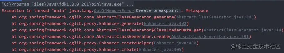 * VM参数:-XX:MetaspaceSize=10M -XX:MaxMetaspaceSize=10M