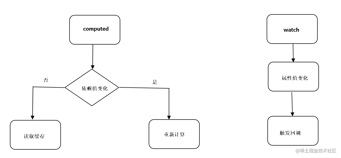 computed:监测的是依赖值,当依赖值不变的情况下,会直接读取缓存进行复用,当依赖值有变化时,会重新计算 -