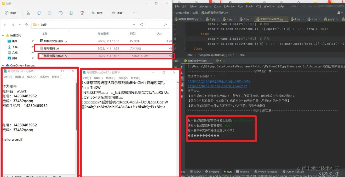 使用python做一个加密资料的软件,可加密应用程序、文件、压缩包等多种文件格式,不可直接加密文件夹,可以先用压缩包打包在加密。加密后的文件后缀不可乱改,否则解密会失败。程序内没有加入加密和解密成功的提示信息。