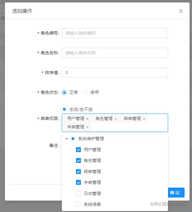 项目中要实现一个给不同角色赋予菜单权限的效果,项目用的react版本16.8.6,antd版本较老,用的3.26.7,树状菜单展示赋权用的antd TreeSelect,要实现的效果如下图所示