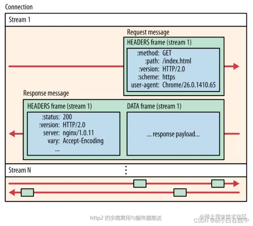 Nginx 采用了 epoll + nonblock socket 这种多路复用机制实现事件处理模型,其中每个 worker 进程会循环处理网络 IO 及定时器事件:
