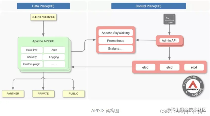 开源版 Nginx 最为人诟病的就是不具备动态配置、远程 API 及集群管理的能力,而 APISIX 作为 CNCF 毕业的开源七层网关,基于 etcd、Lua 实现了对 Nginx 集群的动态管理。
