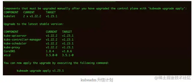 查看kubeadm升级计划,看看还有哪些组件需要升级。