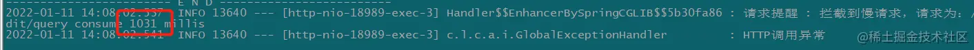 通过系统慢请求捕捉拦截,发现当前请求仅耗时1031毫秒,就触发Read timed out超时错误,本项目与下游项目均注册在Eureka上面,对这个1秒就超时感到很迷惑,于是开始查阅底层源码之旅。
