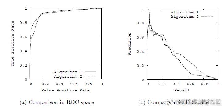 作为衡量指标,选择ROC或PR都是可以的。但是参考资料显示,ROC和PR虽然具有相同的出发点,但并不一定能得到相同的结论,在写论文的时候也只能参考着别人已有的进行选择了。