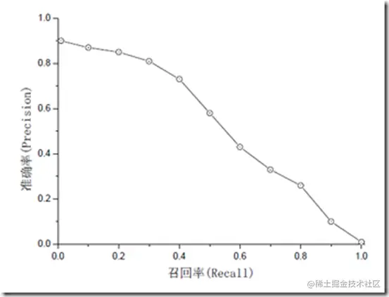 准确率和召回率是互相影响的,理想情况下肯定是做到两者都高,但是一般情况下准确率高、召回率就低;召回率高、准确率就低,当然如果两者都低,那是什么地方出问题了。一般情况下,用不同的阈值(此处可认为是不同的模型),统计出一组不同阈值下的准确率和召回率,如下图: