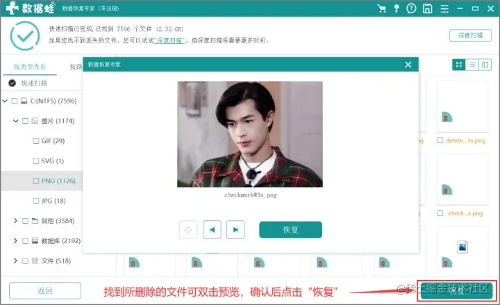 附加项:该步骤是经过第一次扫描后找不到所需文件的体验者必读(找到文件的可浏览直接最后一步),找不到所需文件点击“深度扫描”,这个扫描模式会非常的挑刺,不会放过任何一条漏网之鱼,但是扫描时间会稍微比第一次扫描长一点,请耐心等待。