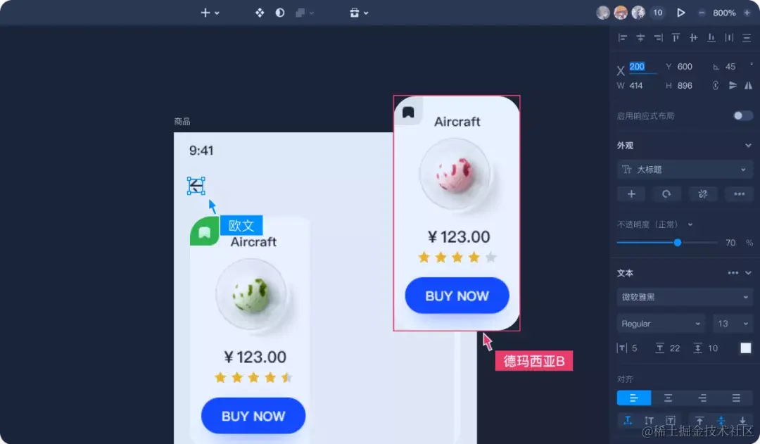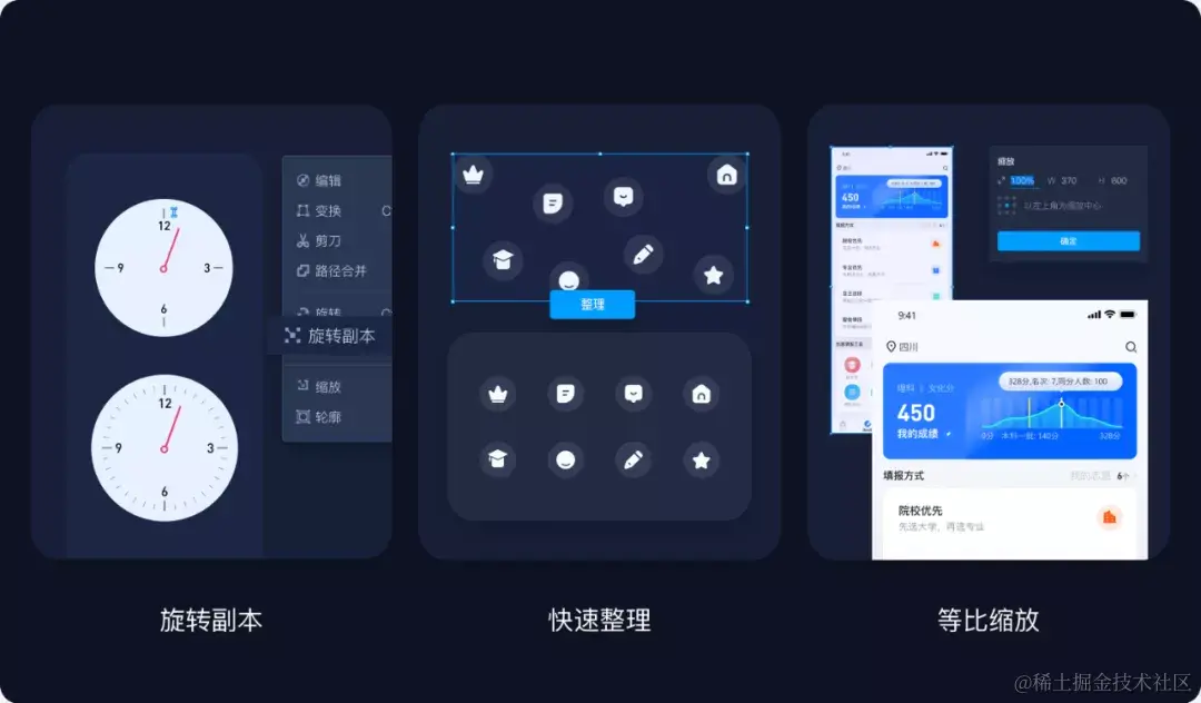 另外,摹客DT还增设了不少实用小功能,比如旋转副本、智能分布、等比缩放等,能为大家的设计工作带来诸多便利,让设计更加高效。