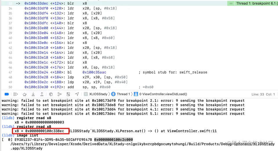 再减0x10000000就是方法的地址 0x0000000100c338ec