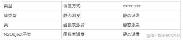 dynamic: 函数均可添加dynamic关键字,为非objc类和值类型的函数赋予动态性,但派发方式还是函数表派发。