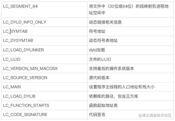 Load commands是一张包含很多内容的表。内容包括区域的位置、符号表、动态符号表等