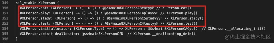 再从SIL的角度去看一下,在SIL文件中的sil_vtable就是对应的这个类的函数表: