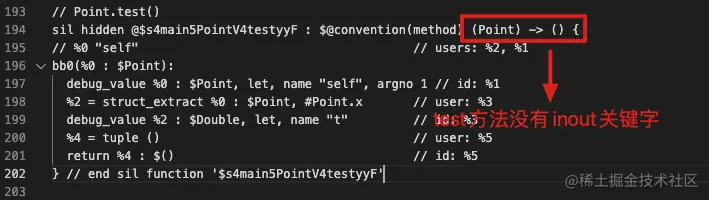 接下来通过SIL来对比一下,添加了mutating关键字和不添加的区别