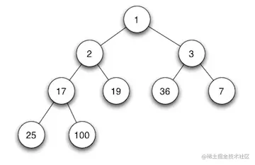 当父节点的键值总是小于或等于任何一个子节点的键值时为最小堆。如: