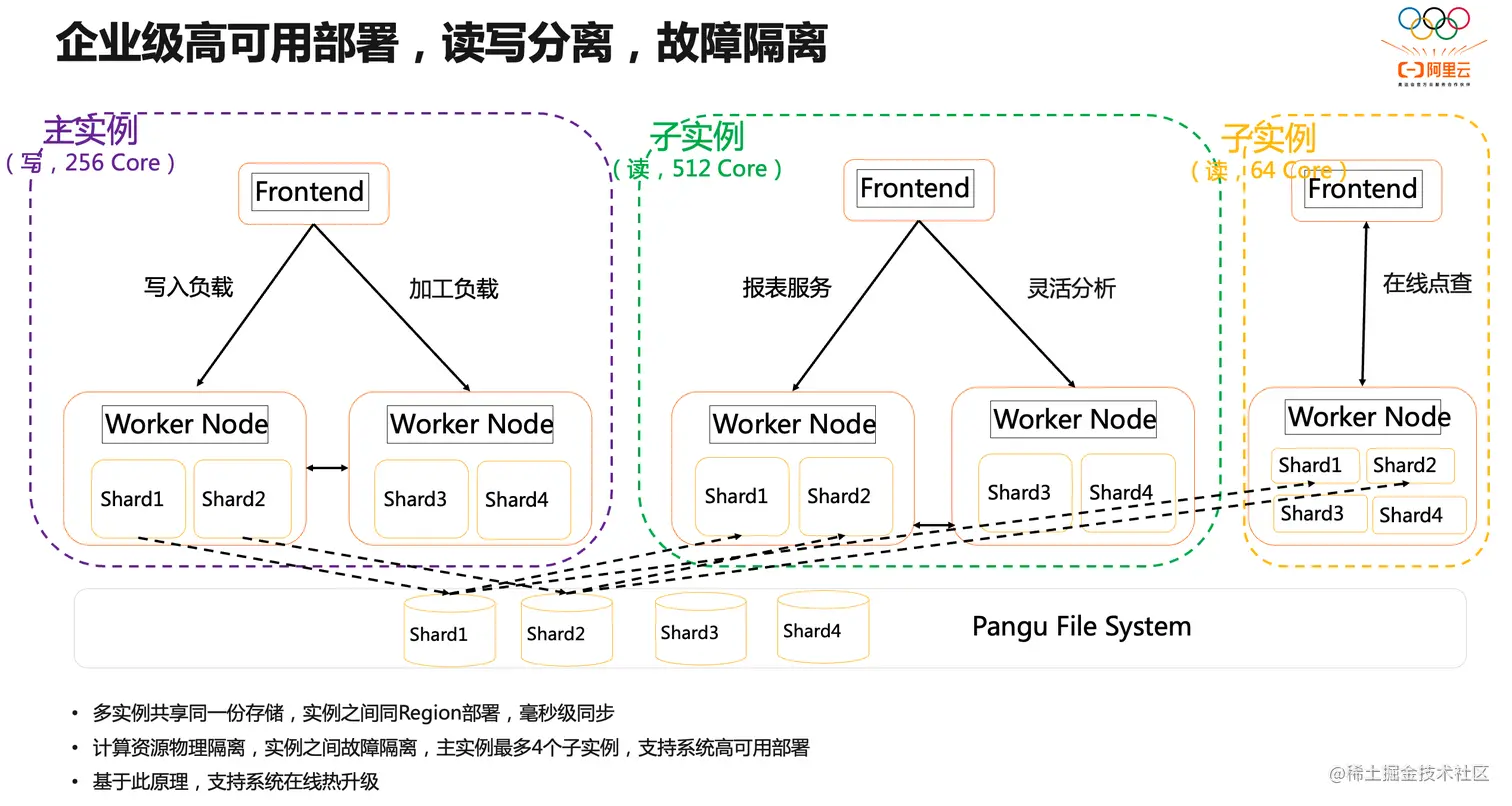 在生产高可用方面,Hologres重磅发布不同层次的隔离与高可用部署,支持单实例内资源组隔离,实现多租户的计算资源隔离,支持多实例高可用部署(共享存储),实现读写分离和故障隔离,并结合Hologres底层核心调度等能力,实现不同场景生产高可用。此外,Hologres在可用性、生态兼容、企业级运维能力上不断探索和更新,帮助企业实现新一代一站式实时数仓。