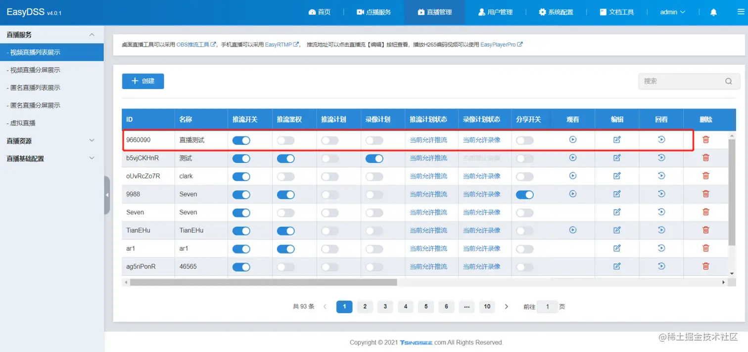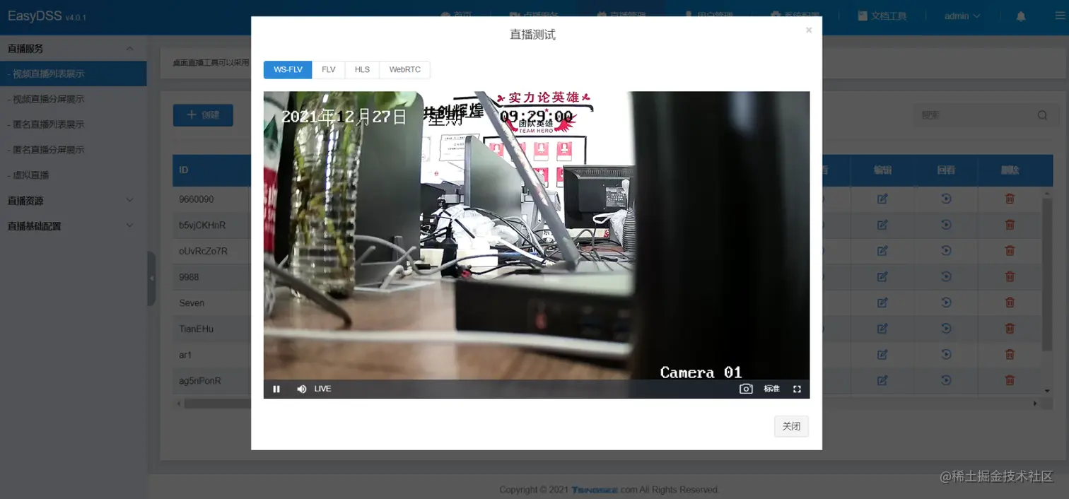 在推流上,EasyDSS支持RTMP推流及转推,可输出HLS/RTMP /HTTP-FLV等多种直播源,多视频终端同步播放。