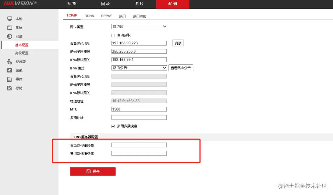 在测试中,我们发现使用公网IP地址可以进行视频流的推送,但是域名无法推送直播流。于是我们检查该推流摄像机的网络,查看DNS是否正确配置。