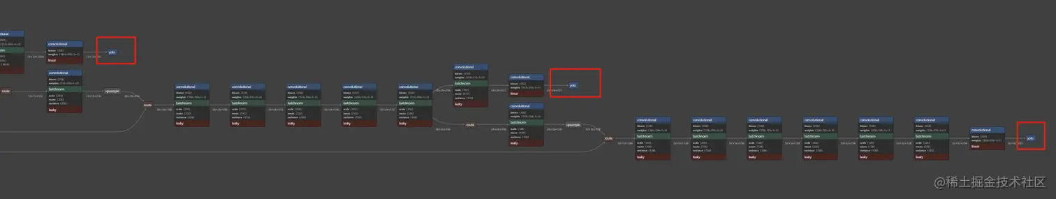 YOLOv3 网络中有两处 route + upsample 的结构,分别引出了两个 yolo 分支,再加上主分支的 yolo,一共形成了 1个 backbone + 3 个 yolo 检测分支的结构。三个 yolo 分支的 shape 分别为 13 x 13、26 x 26、52 x 52,其中最小的 13 x 13 的 yolo 具有最大的感受野,适合检测大目标;26 x 26 的 yolo 适合检测中等大小的目标;最大的 52 x 52 的 yolo 适合检测小目标。这样就形成了 大、中、小目标检测的全场景覆盖,模型鲁棒性更好。
