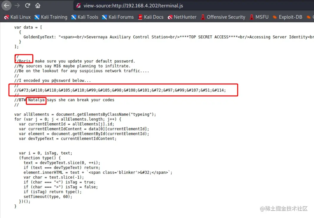 这段信息看出这两个端口开放了pop3的mail服务,那么到此我们信息收集意见归整,发现了对方的两个用户Boris、Natalya,以及开放了邮箱服务,那么肯定是有互相交往的邮件信息,接下来的目的就很明显,知晓邮箱的账号密码登录后枚举信息。
