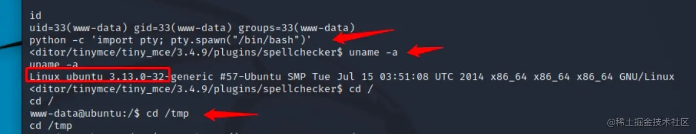 前面获取的是低权限www-data用户,需要提权为root才可以达到我们的最终目的。