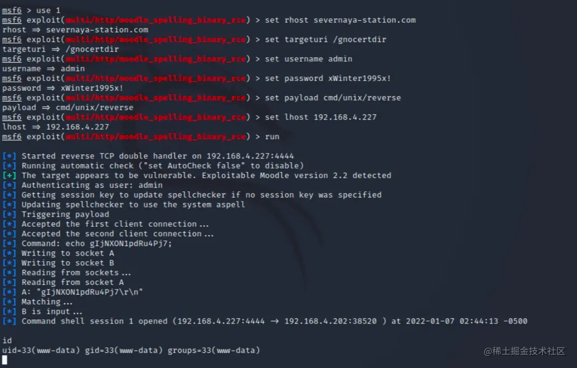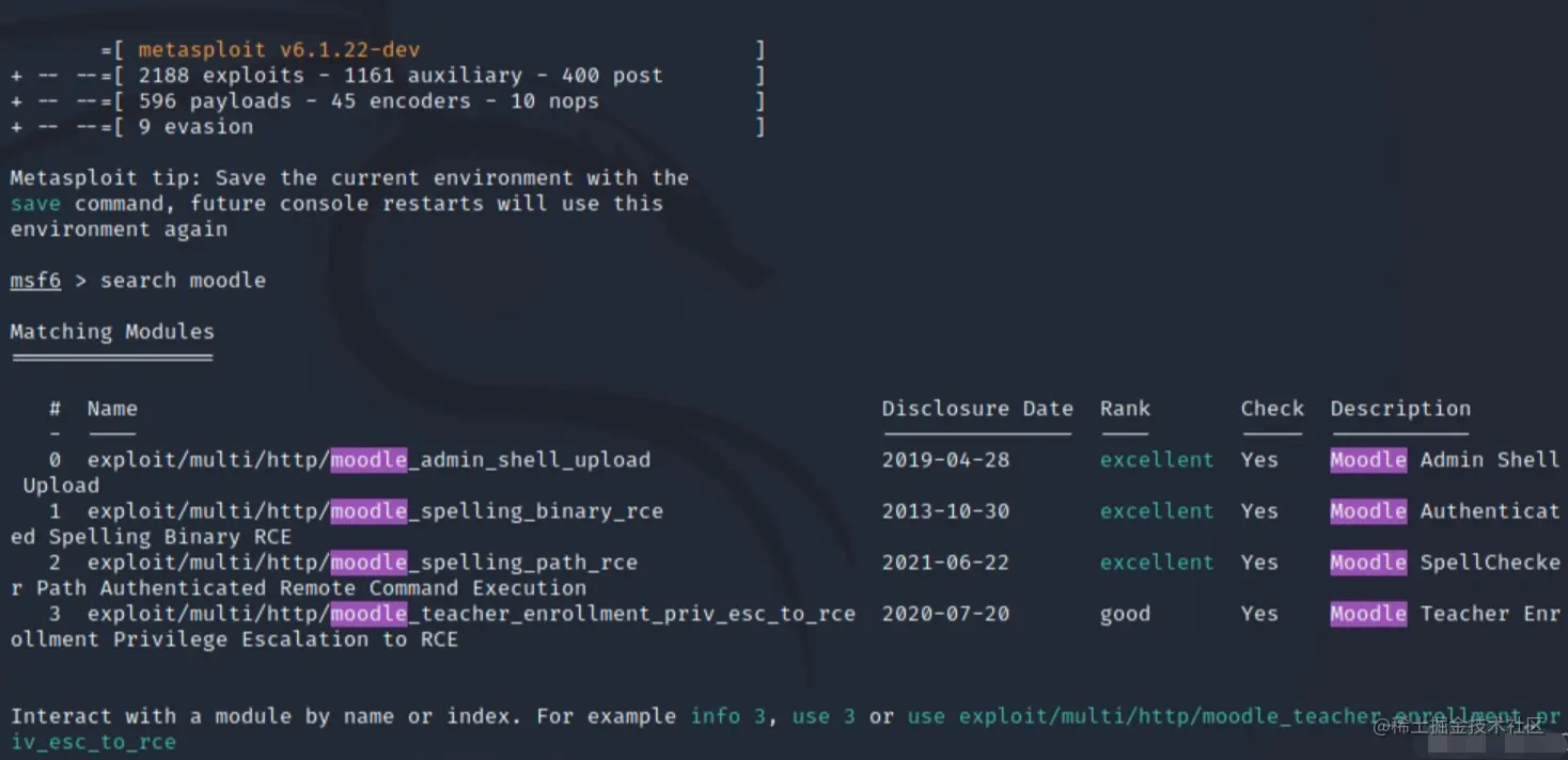use 1 ---调用1 exploit/multi/http/moodle_cmd_exec调用攻击脚本