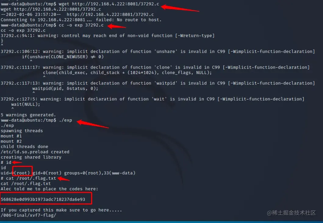 通过内核提权脚本,成功获得了Root权限并获得了flag.txt信息。