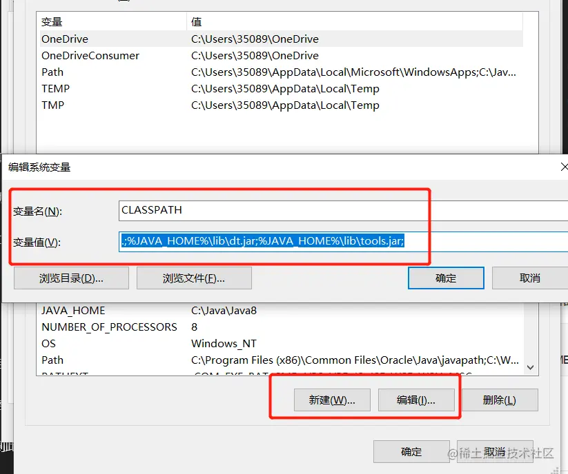如果有 CLASSPATH 变量,点击 编辑