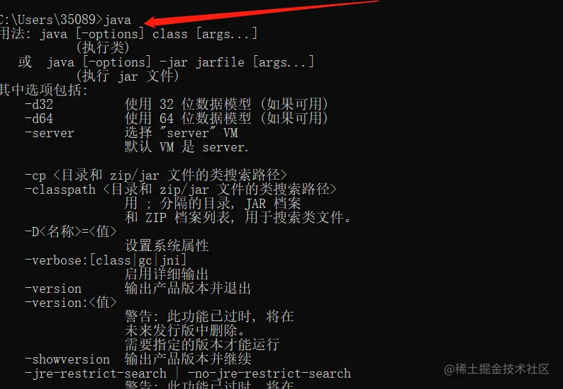 打开 cmd,输入 java,出现一连串的指令提示,说明配置成功了