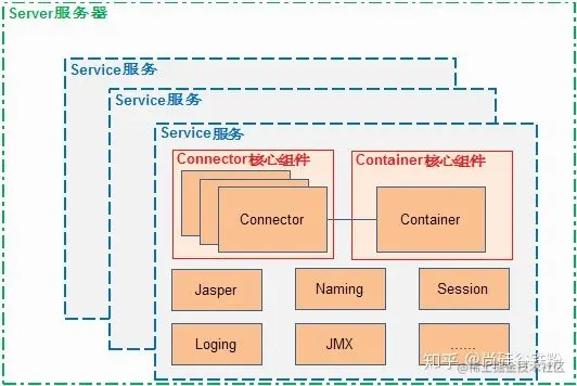 我们将 Tomcat 中 Connector、Container 作为一个整体比作一对情侣的话,Connector 主要负责对外交流,可以比作为 Boy,Container 主要处理 Connector 接受的请求,主要是处理内部事务,可以比作为 Girl。那么这个 Service 就是连接这对男女的结婚证了。是 Service 将它们连接在一起,共同组成一个家庭。当然要组成一个家庭还要很多其它的元素。