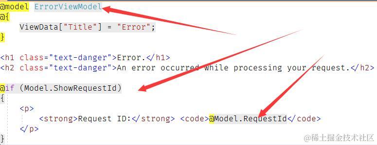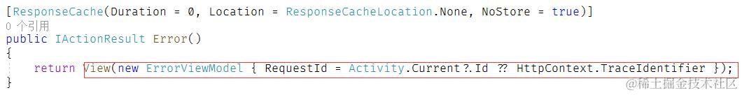 MVC模式的通信是单向的,View触发事件或数据的提交,到了Controller进行处理逻辑之后,返回Model给View,View再从Model中取出数据,当然View中也会有相应的逻辑。个人认为这样的描述算是比较正确,让我们来看看ASP.NET Core MVC项目中是如何处理的,在默认模板中的错误界面是这样的
