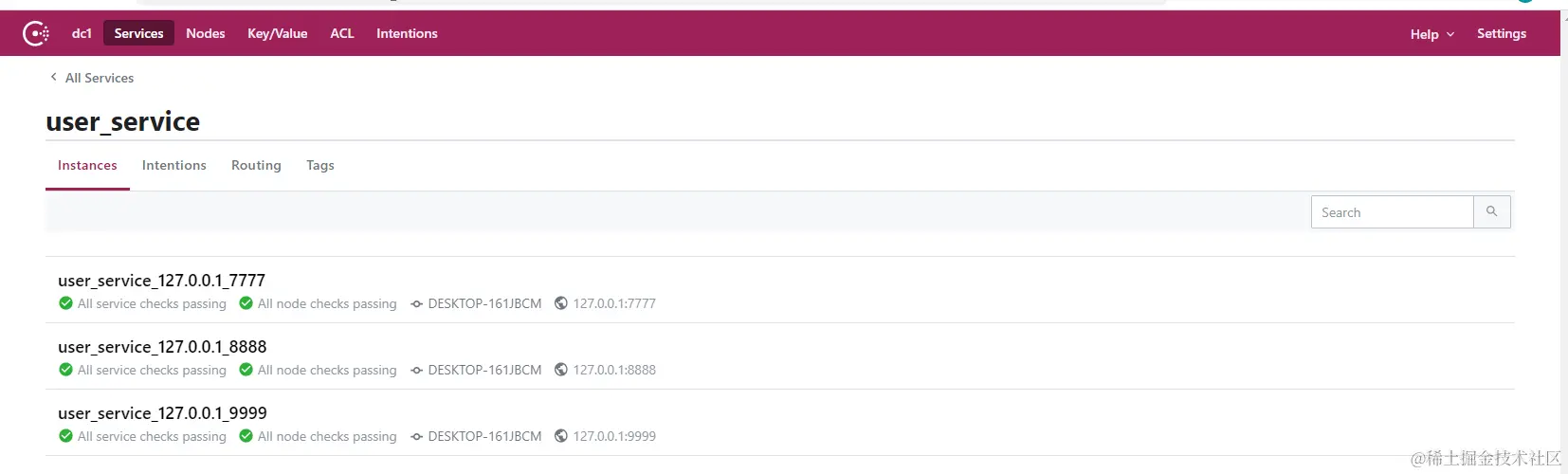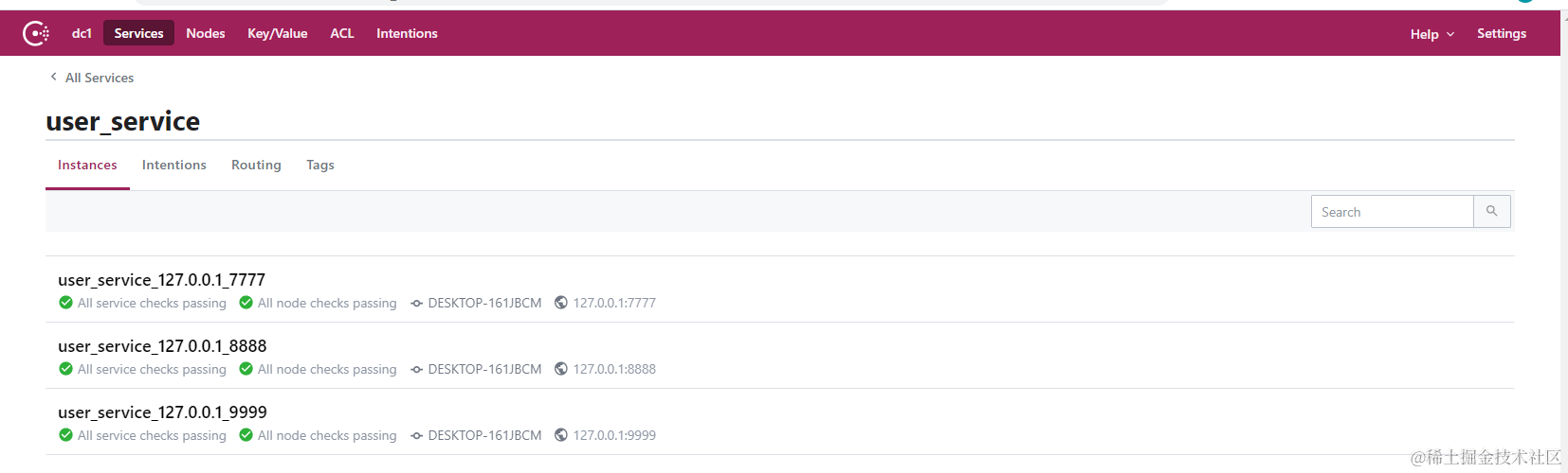 此时,我们在consul的ui界面可以看到三个服务都已经注册到consul并通过了心跳检测。