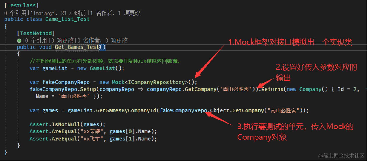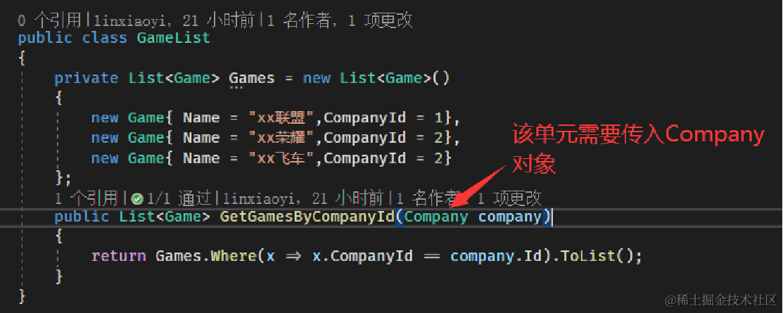 以Moq框架为例,假设我们现在需要通过一个公司对象获取到该公司旗下的所有游戏,该方法依赖一个公司对象。