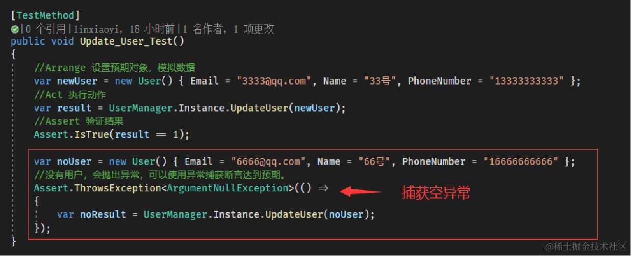 ③Assert 断言阶段(验证结果):把调用目标方法返回的值和预期的值进行比较,如果和预期一致说明测试通过,否则就是失效。