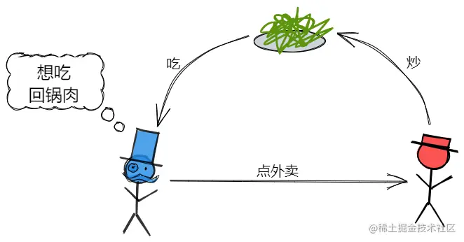 下面通过两张简单的图,了解一下控制反转的思想,我们假设自己现在想吃回锅肉!