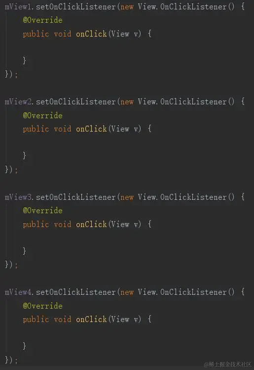 如果这个界面有很多个 View 要设置监听呢?就变成了这样