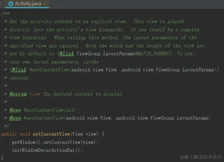 setContentView 需要一个 View 类型的参数,这里传入 View 的子类 TextView