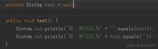 抛出了空指针异常,所以推荐第一种写法来避免空指针异常