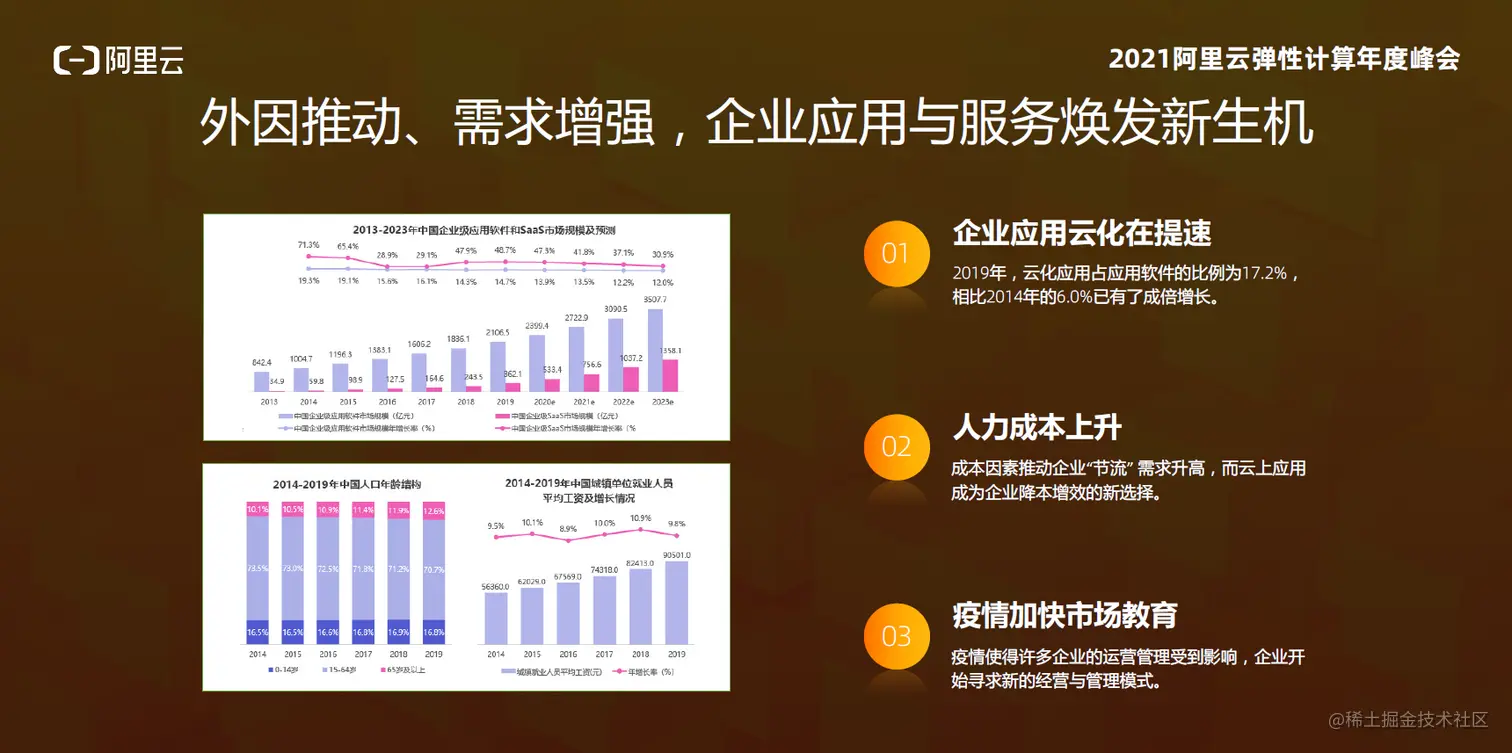 最近几年,尤其是疫情开始之后的这两年时间,资本市场对于企业应用和企业服务的投资非常热,这反映出大家对企服市场的看好程度。同时,我们从很多行业报告也确实能够看到,企业应用云化的速度在提升,SaaS的渗透率也在提升。