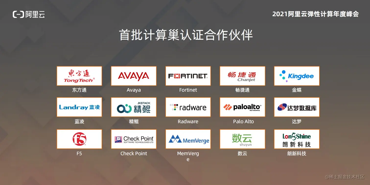 目前,畅捷通、数云、Avaya、Fortinet 等ISV合作伙伴已入驻计算巢并获得授牌认证。未来,阿里云希望有更多的合作伙伴接入计算巢,以计算为巢,共筑云计算时代的企业应用新生态。