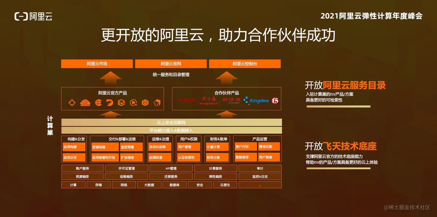 通过计算巢,阿里云开放了过去十二年积累的底层技术能力,包括开放阿里云的服务目录,它包含了阿里云整个生态的客户以及在这个生态中的获客机会。