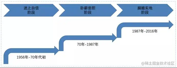 众所周知人工智能缘起于1956年达特茅斯大会,发展至今也有五十多年了,可以说是经历了三起三落(如图3所示)。
