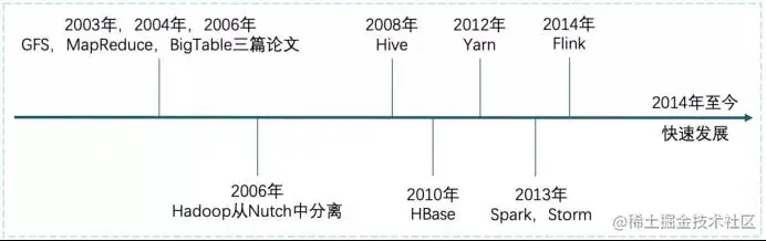 2006年Hadoop翅膀逐渐硬了,从Nutch中分离出来成为Apache顶级开源项目。从此以后,大数据相关的技术就如雨后春笋一样迸发出来,2008年数据仓库Hive;2010年列数据库HBase;2012年资源管理器Yarn;2013年流式计算框架Spark、Storm;2014年实时计算框架Flink。这些东东都让大数据产业得到长足进步。