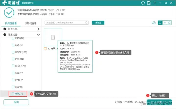 备注:这里!第一次扫描找不到所需文件的小伙伴请看这里(已找到的小伙伴可忽略直接看最后一步)!那么第一次找不到所需文件的小伙伴需要进行一次升级版扫描,点击“深度扫描”,用时会稍微长一些,不要着急,扫描的结果绝对值得等待!