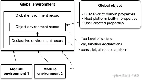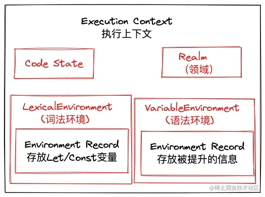 其实,在ECMA262规范定义中,针对执行上下文还有更多的属性和方法。其中,最重要的就是我们上文讲到的词法环境和语法环境(变量环境) 。