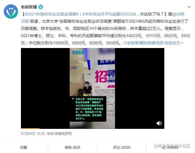 麦可思研究院12日发布的最新研究报告显示,仅4.3%的2020届本科生毕业半年后月收入过万。这说明,对大多数应届毕业生来说,毕业即获得过万月收入的想法不切实际。