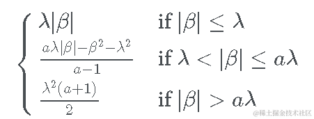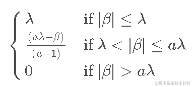 另一方面,对于较小的 β 值 (其中 |β|≤λ),SCAD 惩罚在 β 中是线性的。对于 β 的中等值(其中 ),惩罚是二次的。