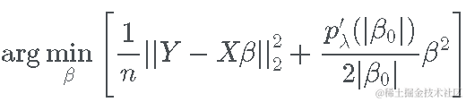 将 SCAD 惩罚的二次逼近代入完整的最小二乘目标函数,优化问题变为: